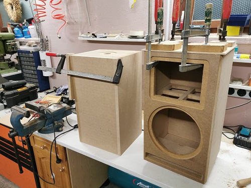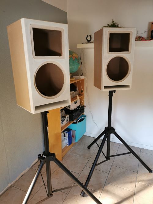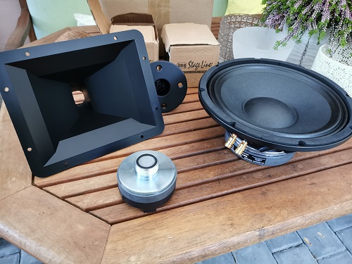 Nachdem mein Sohn eine eigene Wohnung hat, sind die Nordpol nicht mehr so einfach verfügbar, wenn mal eine Party beschallt werden muss. Es muss also Ersatz her. Ich hatte schon länger die Monacor 10-34 MK2 im Auge. Jetzt gibt endlich den notwendigen Grund zum Bau.![]()