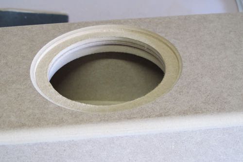 > Weiter geht`s. Die Fräsungen für die Breitbänder sind fertig. Da das etwas schmucklos aussah, wurde ein Zierradius um das Chassis angebracht.![]()