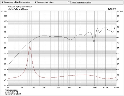> Nach langer Pause hatte ich endlich wieder Zeit, an den Lautsprechern zu arbeiten. Lack ist drauf und es ging ans Messen und Korrekturnetzwerk entwickeln. Spule und Widerstand gegen den Anstieg zum Hochton und ein Sperrkreis sekt die Höhen ab 5000 Hz ab.![]()