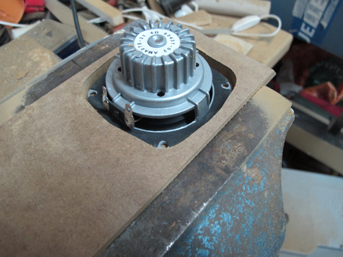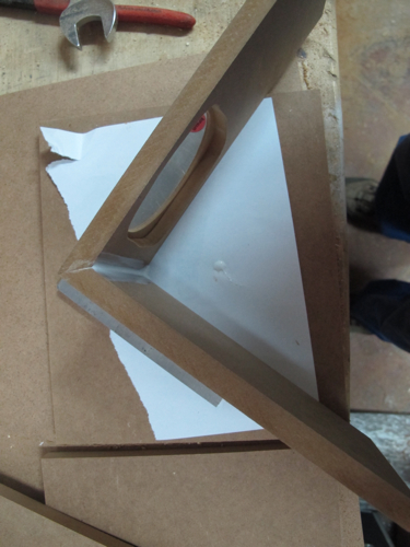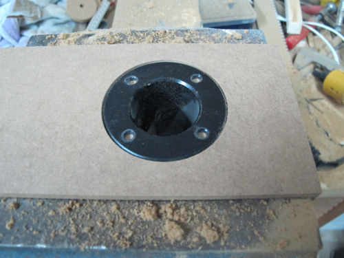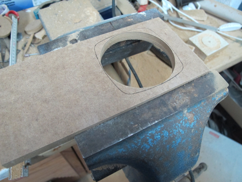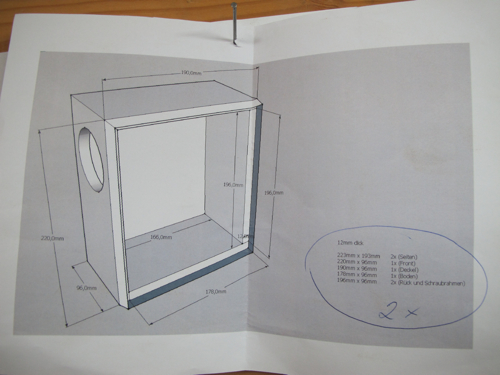 Zuerst fräse ich die Auschnitte für die Chassis. Die sollen dann aber von der Rückseite montiert werden, da der Anbauflansch einfach zu hässlich ist. deshalb stelle ich die Rüchseiten der Fronten frei. So gibt es keine akustischen Probleme durch die rückseitige Montage (Kantenreflexionen).![]()
