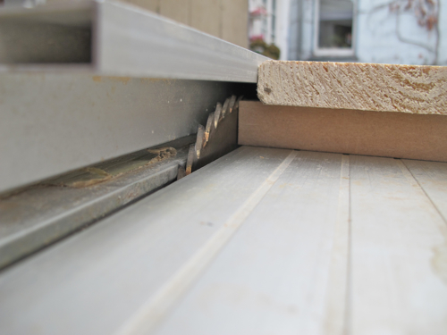 Einige Zuschnitte musste ich ja korrigieren. Dabei ist es immer schwer, auf meiner kleinen Kreissäge saubere, winklige Schnitte hinzubekommen. Nun habe ich mir damit beholfen, ein Anschlagsbrett aufzuschrauben und dann am abgesetzten Anschlag zu sägen. Das klappt 100% und man kann jedes Teil sehr genau einpassen. Das ist schließlich die Voraussetztung für dichte Gehäuse und wenig Nacharbeit.![]()