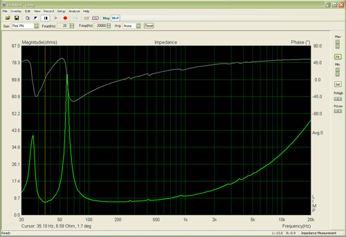 Impedanzmessung mit etwas niedrigerer BR-Abstimmung. Das passt gut zur Bassanhebung des Sub-Moduls.![]()