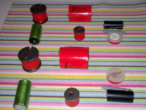 > Die Bauteile für die Frequenzweichen sind endlich da. Man sind die 47µF Folienkondensatoren riesig! Der Lack ist auch fertig und die Endmontage läuft. Die Bassreflexrohre müssen auch noch rein.![]()