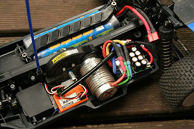 31.09.2009 - Da habe ich endlich mal wieder Zeit gefunden, an dem Baldre zu basteln. Und nicht nur das... bis auf die Karosserie ist er vorerst fertig und ich habe mal eine kleine Runde im Garten und auf der Straße hinterm Haus gedreht. Mit 22er Ritzel wird der Twist nach etwa 4 Minuten nur handwarm. Die Übersetzung 8,48 passt also und Beschleunigung und Endgeschwindigkeit sehen auch gut aus.
