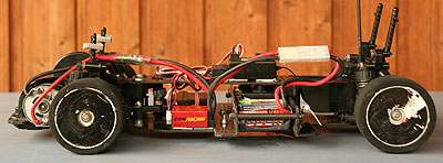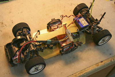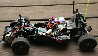 29.12.2008 - Der LRP GT3 14x2 Motor lag da so nutzlos in der Kiste... also rein in den FF-01. Die Untersetzung wurde jetzt nach einigen Probefahrten auf 8,24 festgemacht. Die Vorderräder ringen nach Gripp, die Endgeschwindigkeit ist ausreichend und die Motor-Regler-Kombo bleibt handwarm.