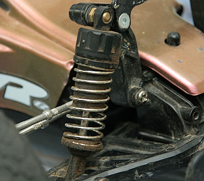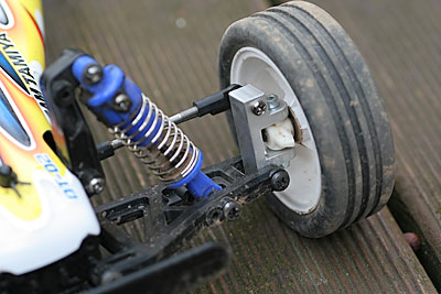 15.05.2008 - Die wohl bisher wichtigste Massnahme sind die CVA-Öldruckdämpfer, welche jetzt eingebaut sind. Anlass war ein zerbröselter Reibungsdämpfer nach einem Crash im Skaterpark. Der Buggy scheint ein anderes Auto zu sein, so macht sich das bemerkbar! Das Chassis scheint zu schweben und ist kaum noch aus der Ruhe zu bringen.