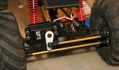 10.09.2009 - Die längeren Links sind verbaut, das Chassis gedreht, damit der Akku über der Vorderachse sitzt. Dazu musste auch die Lenkung umgebaut werden. Die Position des Lenkservos an der Vorderachse folgt dann als nächste Maßnahme. Die längeren Kardanwellen sind nun auch pünktlich angekommen. Die Achsverschränkung kann sich jetzt schon sehen lassen, finde ich.