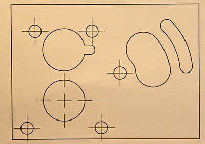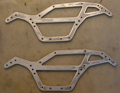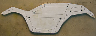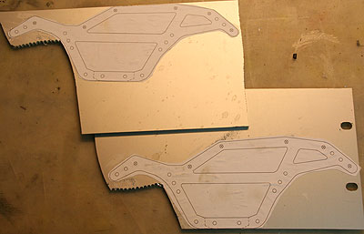 23.09.2009 - Jetzt habe ich mal mit einem Eigenbau-Chassis angefangen. Die Zeichnungen habe ich im WWW gefunden. Dazu werde ich auch eine veränderte Motor-Getriebe-Platte anfertigen, um den Schwerpunkt noch zu senken.