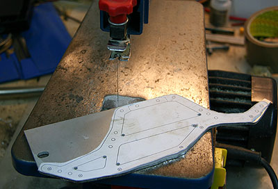 19.11.2009 - Momentan bin ich dabei, die Chassis-Platten auszusägen. Mit einer Dekupiersäge und den feinen Sägeblättern von Proxxon geht das recht gut.