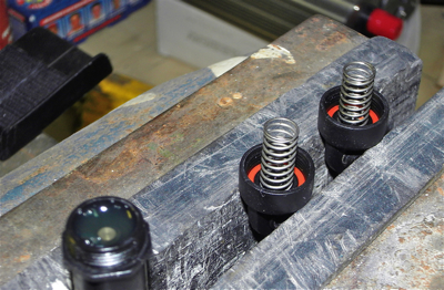 09.05.2010 - Es hat sich wieder etwas getan. Die Federn haben mich schon lange gestört. Da die Dämpfer vom WK ohne Ausgleichsmembran konstruiert wurden, bieten sich Federn innen an. Jetzt hab ich zwar fast nur Ausfederweg... es scheint aber gut zu funktionieren.
