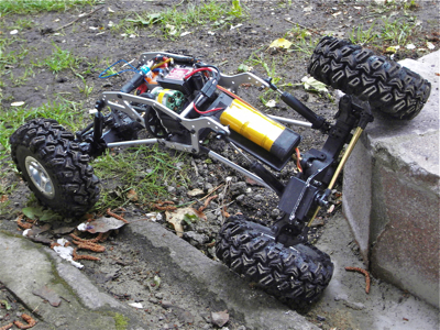 03.09.2009 - Gegen den Brushless-Mini B16 habe ich mir den HPI Wheely King eingetauscht. Das kommt meinem unwiderstehlichen Drang einem Crawler zu besitzen entgegen. Da sind dann zwar einige Umbaumaßnahmen erforderlich, aber was ich bisher im Internet auf dieser Basis gesehen habe, ist vielversprechend.
